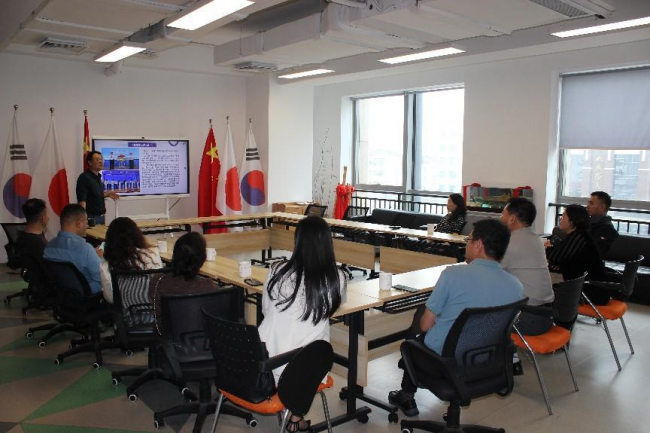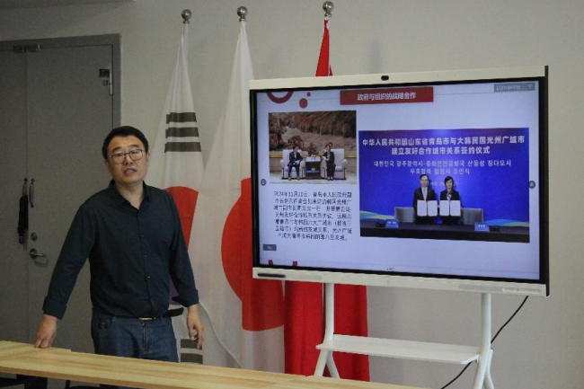 中日韩创新合作中心青岛基地负责人、中东创新主任王可锋进行了宣讲。