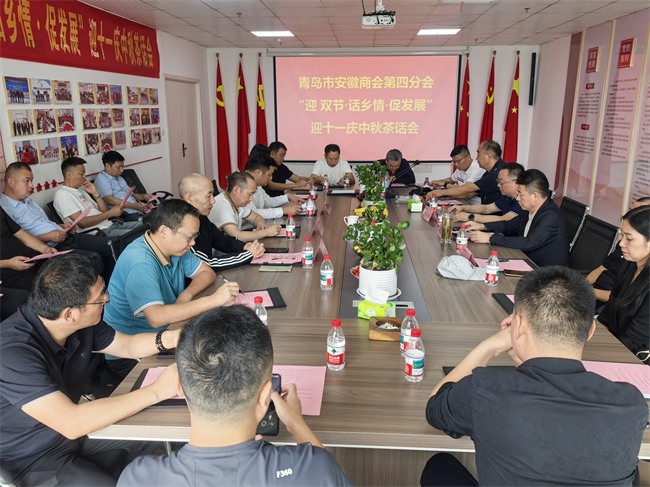 9月28日上午,青岛市安徽商会第四分会“迎双节·话乡情·促发展”迎十一庆中秋茶话会在常务副会长苗凌公司会议室(江山路富安国际809)成功举办。