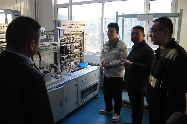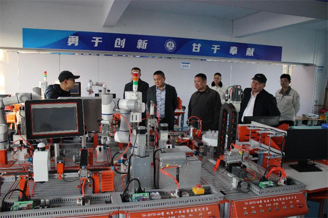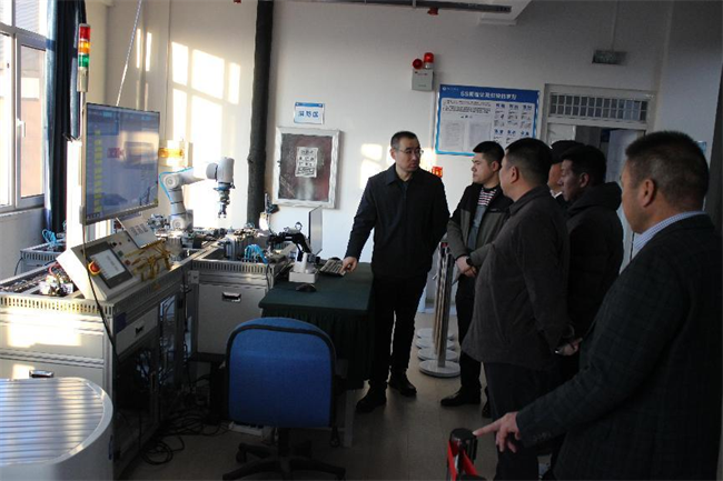 首先在刘院长的带领下,与会人员参观了焊接、机电、电气自动化、机器人等实训室。