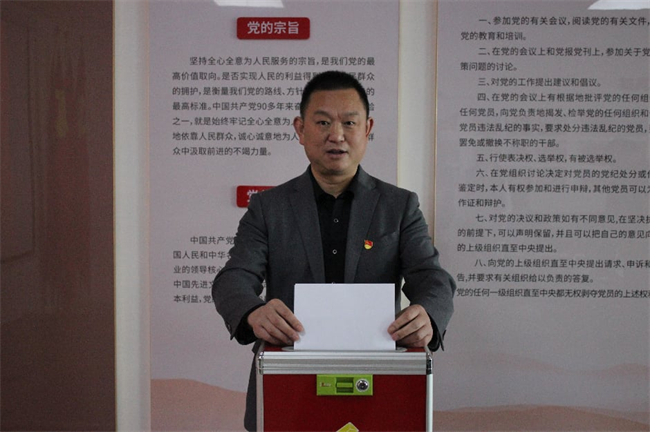新当选的曹万军书记在会上表态性讲话,他表示很荣幸的再次当选为第四党支部书记,这既是一份沉甸甸的责任,更是一份责无旁贷的使命。支部是引领和纽带,肩负着商会的健康发展,服务会员企业的重要职责。在今后的工作中,自己将与支部委员们一道恪尽职守,努力工作,重点做好以下几方面工作:一是强化思想引领,筑牢党建根基。二是健全组织建设,凝聚党员合力。三是聚焦服务发展,彰显支部担当。四是加强沟通协作,共创发展分会精神。
