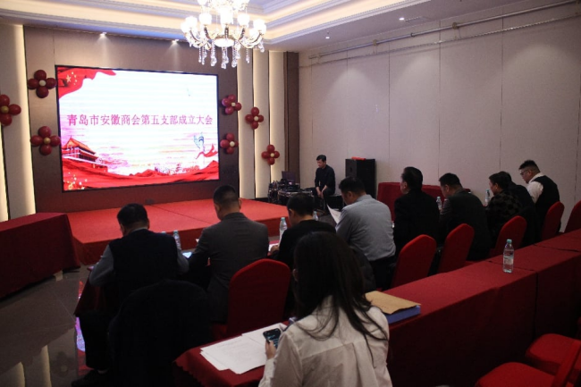 2月5日上午,青岛市安徽商会第五党支部成立大会在金龙源酒店三楼会议室隆重召开。