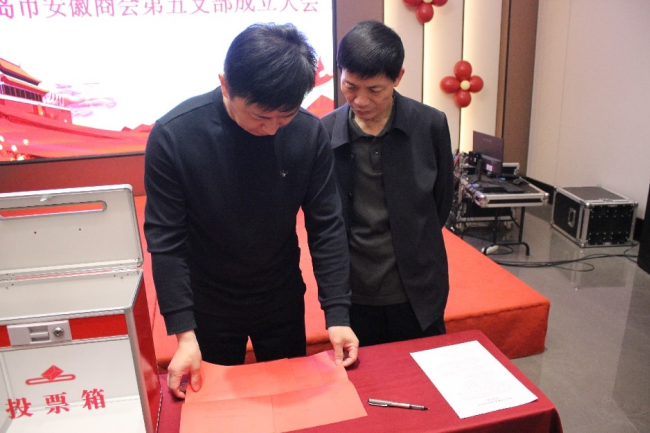 经青岛市安徽商会第五党支部第一次会议投票选举,王世国同志以3票全票通过,担任第五党支部书记。经分工,王芳同志担任组织委员,裴克维同志担任宣传委员。